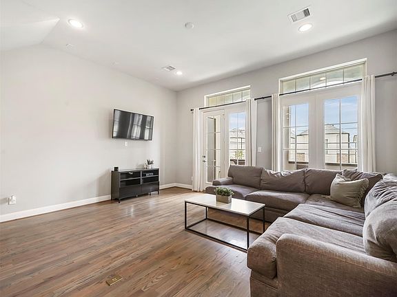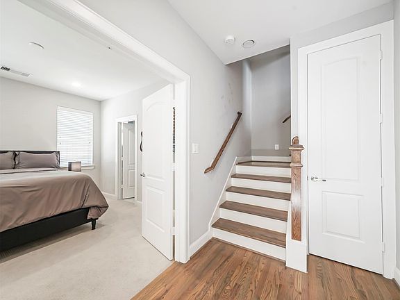 Gorgeous home in Cottage Grove within minutes of major freeways, shopping & dining destinations features an open floor plan with high ceilings, crown moulding and oak hardwood floors throughout the living areas. Living room with French doors offers access to covered patio and flows seamlessly to dining room and kitchen. Gourmet island kitchen has pendant lighting, breakfast bar seating, 42 Shaker-style cabinetry highlighted by quartz counters and subway tiled back splash with under-mount lighting, S/S appliances including 5-burner gas range, built-in microwave, wine fridge & refrigerator stays. Owners suite has tray ceiling & luxurious bath with quartz counters, dual sinks, soaking tub, shower with seating & spacious walk-in closet. Secondary bedroom with en-suite bath has nearby utility room w/washer & dryer included. First floor bedroom with double door entry off foyer & en-suite bath could be study or home office. Beautiful fenced backyard has 14x12 paved patio & grassy area.