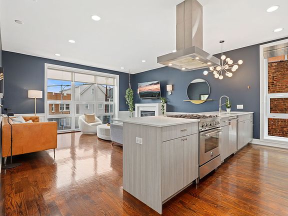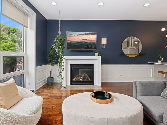 Step into luxury with this exquisite modern unit, masterfully designed for both style and functionality. As you enter, you're greeted by soaring ceilings and an abundance of natural light streaming through nearly floor-to-ceiling windows, complemented by chic custom lighting with updated dimming capabilities. The open-concept layout is perfect for entertaining, featuring a sophisticated kitchen outfitted with sleek quartz countertops, custom cabinets, Bosch appliances, a wine refrigerator, and a stunning Bertazzoni range. The expansive primary suite boasts a generous walk-in closet and private access to your own outdoor deck. Indulge in the spa-like ensuite bathroom, complete with a jacuzzi bathtub, a separate shower, and a gorgeous floating vanity with ample storage. Included is your own charming section above the garage with Trex decking-this home is an entertainer's dream. One private garage parking spot. Neighborhood amenities include great restaurants like Thattu, Kuma's Corner, and Eden. For coffee, Cafe Tola and Avondale Coffee Club. Zip to the city with ease down 90/94- or hop on the train to O'Hare at the very close Blue-Line Stop. Schedule a showing and make this turn-key home yours!
