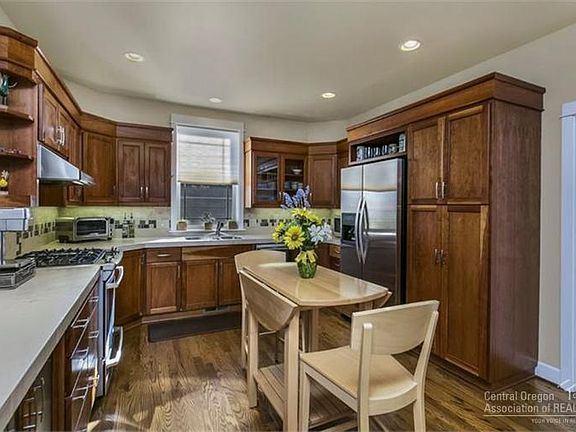 Remodeled-Big Awbrey Butte Craftsman Home on Unusually Level Lot! 4Bd+Office/5Bd w/closet & 3Ba, big covered porch, great room w/slate gas FP, tile & hardwood floors, kitchen remodel w/tile counters, stainless appl w/dual fuel Electrolux gas range/double oven, main level master w/radiant floor heat, jetted tub + tiled shower, 2ND suite w/private bath, new paint, newer carpeting, 2-zone gas FA heat + central AC, alley access 2+ car garage, beautifully landscaped front & back yards, 1 year home warranty too!