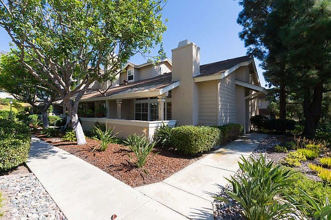 Prime remodeled end-unit attached home in the Bluffs of Foxrun. This "Plan A" has the largest lot size in the Bluffs, evident in the over-sized two car garage and extra large patio. Not a condo, with double insulated exterior wall between units, as a single family home it's FHA and VA approved. This is an exceptional opportunity to own the closest thing to a one-level in the Bluffs of Foxrun. Lovely heated pool and spa in view of the living room and patio. See supplemental remarks for more information. Welcome to the Bluffs of Foxrun, 200 single family attached homes on the rim of Tecolote Canyon, just 1.7 miles east of the waters of Mission Bay Park. These are not condos. You own the land and buyers must obtain a home owners insurance policy just like a single family detached....no need for condo rider insurance for contents. The HOA however takes care of all exterior maintenance, landscaping, roof, pool/spa, and exterior termite work, so in that respect it functions like a condo project. The main advantage to these being built like single family homes is that the walls between the units must be double exterior walls with air space in between, i.e. no common walls, even though they are attached. Very quiet! All the floorplans have two car attached garages, there's no assigned common area parking spaces, and there's plenty of city street parking as well. It's VERY rare for a planned community to have no parking problems, but this is one of the may reasons why Foxrun is over 85% owner occupied after 34 years. Quality. Quietness. Convenience. As mentioned in the remarks above, this Plan A has the largest lot of all the townhome floorplans, so it has the largest two car garage in the entire development! And this location is spectacular...the sunny south facing front door is surrounded by lush landscaping. Serene and private. Most of the year the pool feels like your own private backyard pool and spa. The surrounding infrastructure is rapidly being upgraded as well, wit