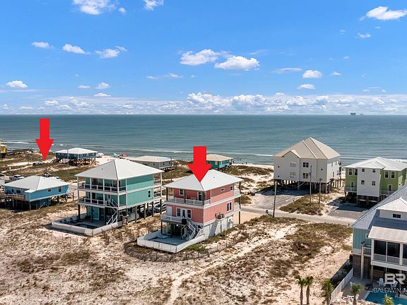 3BR / 3BA DIRECTLY ACROSS FROM THE BEACH with GULF VIEWS!Experience coastal living at its finest in this beautifully designed beach home perfectly positioned just feet from the sand. Enjoy the luxury of EASY NEARBY BEACH ACCESS and your own PRIVATE SALTWATER POOL. The ground level offers wonderful space for outdoor living under the home & around the pool, ample parking and an outdoor hot-water shower. Built to Gold Fortified standards, this home offers lasting durability and lower insurance costs. Inside, there is an open-concept living area with wood plank tile flooring throughout and large south-facing windows that showcase stunning Gulf views. The kitchen and dining area are designed for entertaining, with granite countertops, stainless steel appliances, and a spacious dining table with extra counter seating.The main level bedroom includes a queen bed plus a full-over-full bunks and has access to a full bath with double vanities. Upstairs, the primary suite features a king bed, en-suite bath, private south facing balcony, and even a coffee bar with mini-fridge. A second upstairs suite also offers a king bed, private bath, and balcony access to a north facing deck. With Gulf Views, a private Pool, Gold Fortified construction, and easy nearby beach access, this property is an exceptional beach retreat or vacation rental opportunity! Established Rental History! Buyer to verify all information during due diligence.