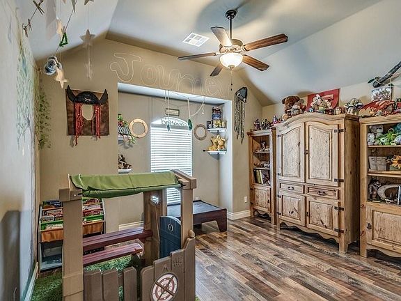 Walk through front door into a large living area with vaulted ceilings, go upstairs to a large bonus room that would be great for a home office or a game room. House boast a large primary bedroom on opposite side of house from the other rooms to give you peace and quiet from guest staying with you. Enjoy sunsets on the screened in patio or spend time in the large backyard with the family. Back yard currently has a halfpipe built in the backyard that will be taken down prior to closing unless you want to keep it. House has a large 3 car garage with an inground storm shelter. Come take a look at this well-kept home and put your finishing touches on it to make it your own.