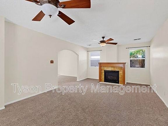 Welcome to this beautiful three-bedroom home located in the Northern Meadows neighborhood of Rio Rancho. Conveniently situated near Unser and King, near Campus Park and the Rio Rancho Events Center. Upon entry, you're greeted by a welcoming foyer that leads into a spacious layout designed for comfort and functionality. The kitchen is equipped with essential appliances including a refrigerator, range, and dishwasher, and features ample cabinet space along with a pantry closet. It opens into a generous living room with ceiling fans and a decorative fireplace. A second living area provides direct access to the landscaped low maintenance backyard with a gazebo. The primary bedroom includes a ceiling fan, wardrobe closet, and a private ensuite bathroom with a large vanity. Two additional guest bedrooms also feature ceiling fans and share a well-appointed guest bathroom. A dedicated laundry room is available with washer and dryer hookups.
