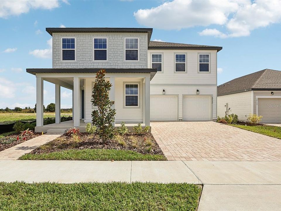 Discover the Moseley II, a stunning two-story home inspired by the Harmony Collection. This thoughtfully designed floorplan offers 4 bedrooms, 3 baths, and a private study, providing the perfect balance of space and functionality. The open kitchen features 42" white cabinets, stainless steel appliances, a large island with upgraded quartz countertops, and elegant finishes that flow seamlessly into the main living area. The 20-foot ceilings in the family room create a bright, airy atmosphere, while wood-look luxury vinyl plank flooring enhances the modern aesthetic. Upstairs, you’ll find a versatile loft and spacious bedrooms with upgraded carpet for added comfort. Enjoy resort-style living with community amenities including a pool, clubhouse, and playground. Conveniently located near top-rated schools and just minutes from the charming shops and restaurants of downtown Mount Dora, this home perfectly combines modern design, comfort, and convenience.