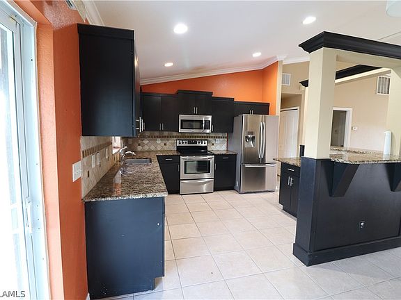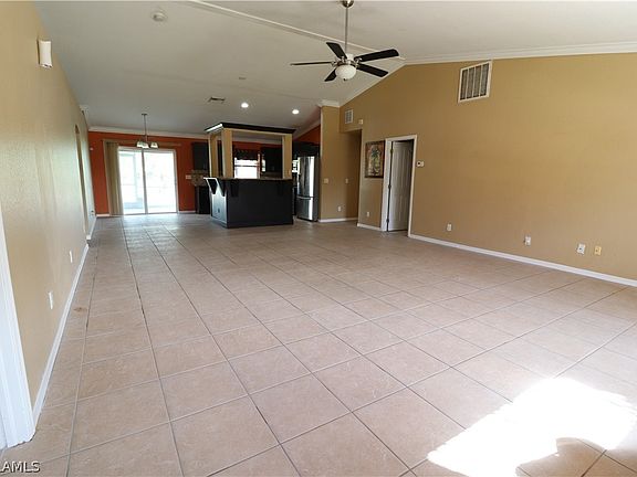 Large single-family home in south west Lehigh Acre. Property boasts 3 bedrooms plus den and 2 bathrooms and 2 car garages. Tile throughout the entire house. Wide open concept makes the property even larger. Updated kitchen offers granite countertop with beautiful dark wood cabinets and stainless appliances. Large fenced in back yard has lots to offer for family gathering and dog. Please don’t hesitate to come see this property!