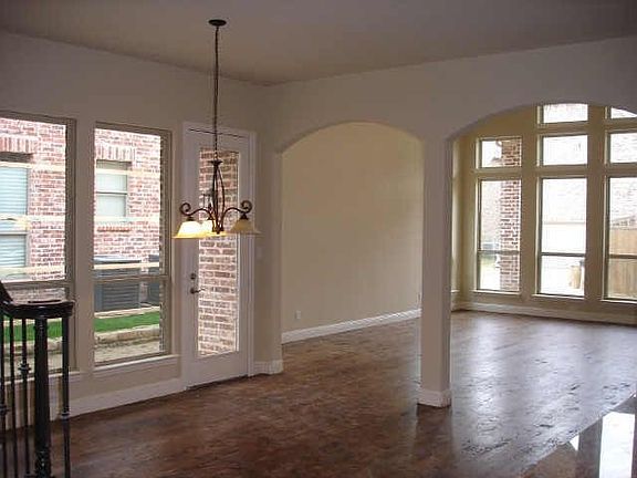FABULOUS NEW CONSTRUCTION! Extensive scraped wood floors. Very open plan. Open kit with granite, alder cabs, stainless, dbl ovens, big island. Stunning cast stone FP in Fam Rm. Lux master has jetted tub, nice shower, big closet. Large bedrooms, good storage, spacious GmRm. 2 patios. Tandum 3 car. Terrific Frisco location near all the amenities, easy access to Tollway and 121. Community pool. Great opportunity! Est complete April.