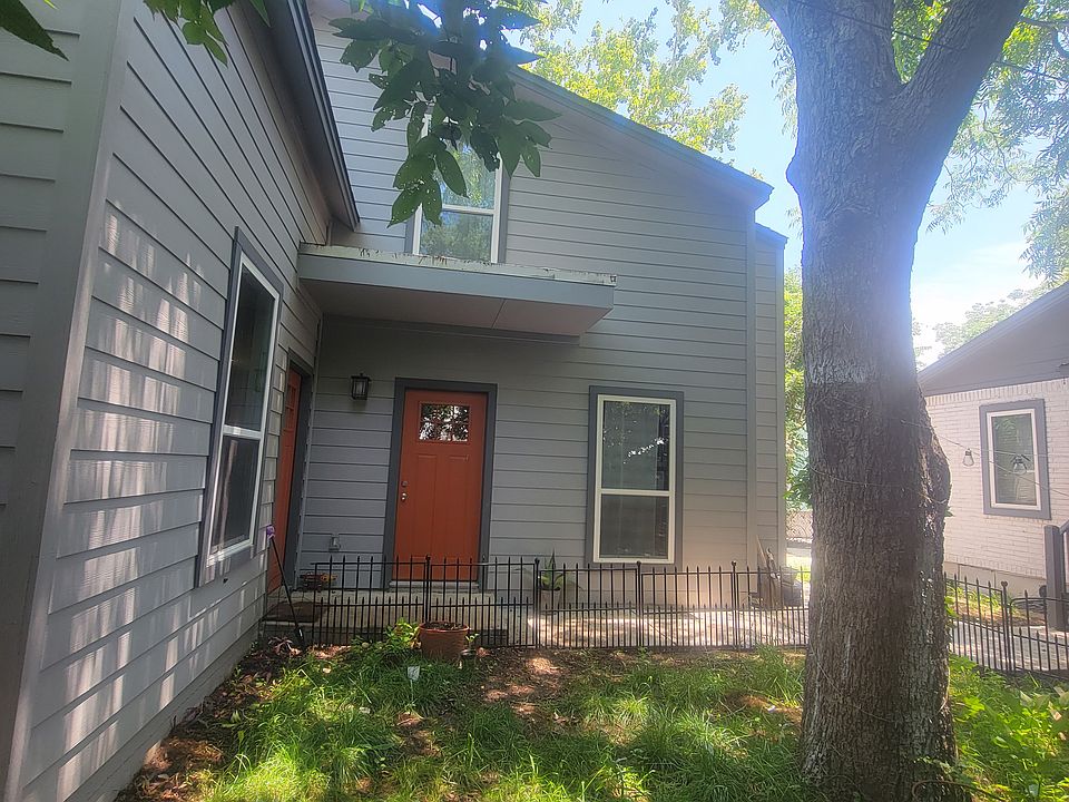 Short term, 6-month, furnished, single occupancy attached 2 story house. (one common wall). This is a guest house in the back of the main house, with a private entrance. It is fully furnished and available for shorter term leases of 6 months. The shared backyard/ courtyard area has space for a gardening, and includes chairs & table, and a giant pecan tree that provides lots of shade and a great view from the 2nd story bedroom/office. The inside is cozy and charming, with a spiral staircase leading from the first floor to the second floor. The second floor has a double (full) size bed, and a work desk, with an ergonomic desk chair. The first floor has a kitchenette, with gas stove, apartment size refrigerator, dishwasher, microwave, and Keurig coffee machine. There is an electric fireplace both upstairs and downstairs, that further creates a cozy and relaxing space. This guest house is a new build, just finished in 2022. Shared laundry room.
