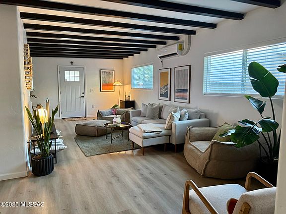 Welcome home to this darling desert hideaway in historic Blenman Elm. This 2BD/1BA home was beautifully remodeled in 2024, preserving it's classic wood-beamed ceilings while updating everything else for modern comfort. Inside, natural light pours through every room, making the space feel bright, open and inviting. A thoughtfully updated and stylish kitchen features granite countertops and stainless steel appliances. Step outside to a covered back porch and a deep backyard, that offers more than just space-potential. Zoned R-2, this lot is ready for your dream casita (buyer to verify). All of this just blocks from the University of Arizona, neighborhood cafes and local parks. Whether you're putting down roots or looking for a turn key rental, this one's easy to fall in love with. Seller is a licensed real estate agent in the state of Arizona.