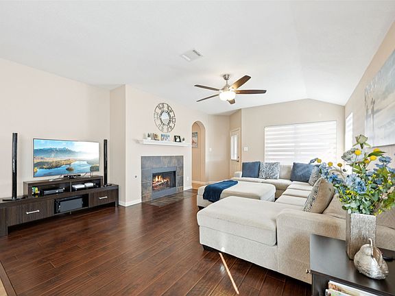 Modern styleStately fireplaceAbundance of natural lightFamily roomCovered patioCozy ambianceKitchen and dining areas
