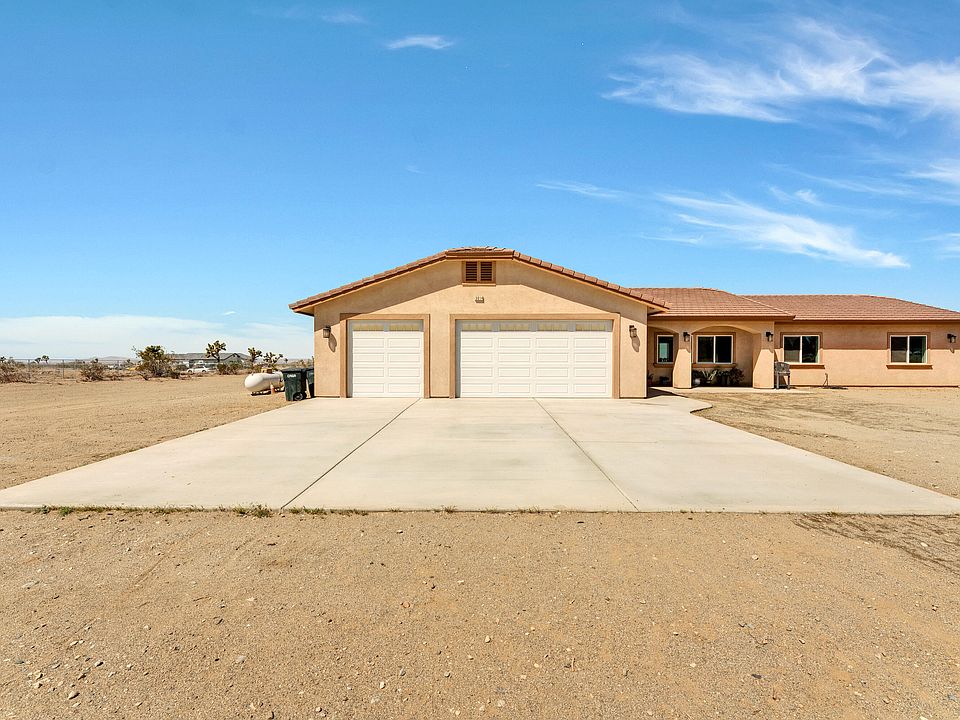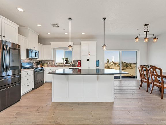 THIS BEAUTIFUL HOME was built in 2020 sitting on 2 acres +/- of horse property in Pinon Hills. BE the lucky owner and enjoy the peace and quiet in this home. From the Family room, balcony, and kitchen enjoy the BEAUTIFUL view of the mountains. Just imagine when it snows how beautiful the view of the mountains will be. 3-car attached garage. As you enter the home the OPEN FLOOR PLAN, Leads to the kitchen and family room with a marble counter and beautiful white cabinets. large tile wood-looking floors, tray ceiling, and all LED lighting. The benefit of the open floor plan is that you can be in the kitchen with the huge island, marble counters, stainless steel appliances & beautiful backsplash. There are 4 bedrooms, 2 full bathrooms, & a one-half bath. The indoor separate laundry room with storage and quartz counters makes doing the laundry just a little more enjoyable :-) Check out the master bathroom, it's truly impressive with dual sinks, hardware, high-end touches, and a massive tile/glass shower with dual shower heads including a large overhead rain-style feature! The other 3 bedrooms have walking closets. The property also has a TANKLESS water heater. The land is ALL useful on a FLAT land. This home is located in the AWARD WINNING SNOWLINE SCHOOL DISTRICT & more. This is your chance for this BEAUTIFUL HOME to be yours.