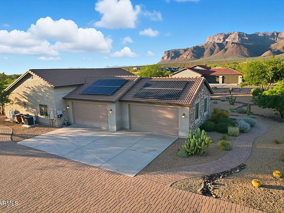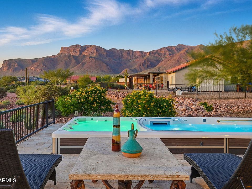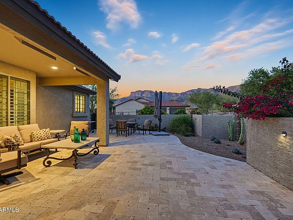 WOW! Welcome Home To This Exquisite Turnkey Retreat! Loads Of Extras & High End Finishings From Entry & Walkway Pavers To Gorgeous Front Courtyard & Into This Immaculate Home ALL Surrounded By BREATHTAKING Superstition Mountain & City Light Views! Upgrades Include Pavers, Travertine, Courtyard Heaters, Tile, Granite, Custom Cabinetry, Lighting & Hardware, Pullouts, Upgraded Appliances Including Drawer Microwave, Designer Accent Paint, Plantation Shutters, Owned Solar, Bose Surround Sound & More! Back Patio Rivals Front Courtyard w/Custom Pergola, Travertine, Endless Pool Swimspa w/Current & Built In Treadmill & Of Course Those STUNNING VIEWS! Home Offered Turnkey Complete With Furnishings, Bedding, Linens & Kitchen Contents! Separate Artwork Package Also Available - Thank You!
