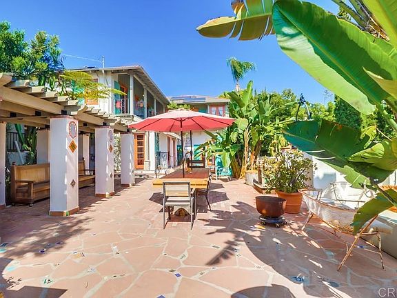 A truly rare and enchanting Point Loma estate, this gorgeous 1930s residence is overflowing with historic character, timeless craftsmanship, and the kind of architectural details that make a home unforgettable. Original hardwood floors, historic beams and arches, vintage fireplaces, stained glass features, French doors, and beautiful vintage style paint and wallpaper create an ambiance that feels both elegant and warmly nostalgic. The home’s gracious 3,079 sq ft layout includes large, light-filled rooms, a formal dining room, sun-drenched sitting areas, and an upstairs level where the bedrooms share a charming walk-around balcony overlooking the beautifully landscaped gardens. The kitchen features a 6-burner gas Thermador stove, 2 refrigerators, stainless steel appliances, and pretty countertops. Multiple unique gathering spaces throughout the home create a warm, inviting, boutique-hotel feel. An original elevator adds a remarkable and rare historic touch, while an additional kitchenette in one of the rooms offers excellent flexibility for extended living or guest quarters. Detached offices provide privacy for work or creative pursuits. The spacious 7,405 sq ft lot offers mature landscaping and lush low maintenance gardens which enhance its serene and romantic setting. Perfect for investors, multi-generational living, rental use, or anyone seeking a truly special home rich with vintage San Diego charm. This one-of-a-kind property blends architectural beauty, history, and lifestyle appeal in one of the most coveted neighborhoods in coastal San Diego right across from Liberty Station. Do not disturb occupants - see showing instructions.