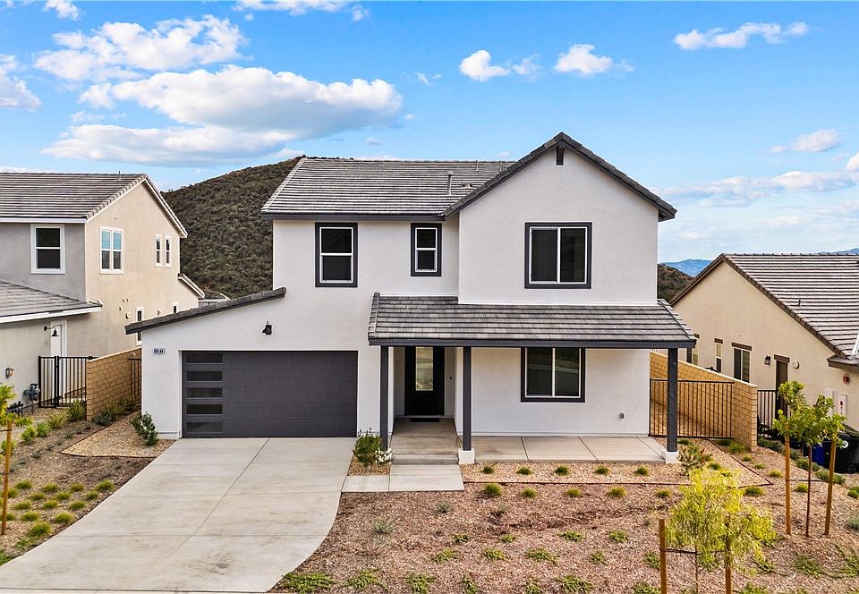 QUICK MOVE-IN HOME! Savor the Savings with our Fall Blue Tag event! For a limited time, take advantage of $50,000 FLEX CASH on move-in ready homes! This breathtaking VIEW home is nestled in the serene community of Williams Ranch in Santa Clarita Valley. Enjoy the tranquility of a rural setting while still being just minutes away from the vibrant shopping and dining scene of Valencia. Enter through an enchanting operating vineyard and 5 acres of citrus orchards, accessible to homeowners and managed by the HOA. Explore nearly 5 miles of scenic paseos or indulge in the luxurious amenities, including a junior Olympic size swimming pool, cabanas, wine pavilion, amphitheater, and clubhouse. With 9 pocket parks scattered throughout the community and a large public park just outside the gates, Williams Ranch offers a lifestyle unmatched anywhere else. Step inside to discover a huge kitchen with a walk-in pantry and plenty of storage, seamlessly opening to the spacious great room and separate dining area, creating the perfect layout for entertaining or everyday living. The first-floor bedroom with an ensuite bath offers an ideal retreat for guests, ensuring their comfort and privacy. Upstairs, you will find two secondary bedrooms, a convenient laundry room, and a versatile loft area, providing plenty of space for relaxation and recreation. The primary suite completes the second level, featuring a spacious bedroom and luxurious bath with a walk-in closet, offering a tranquil sanctuary for rest and rejuvenation. This stunning home provides ample space for both vehicles and storage, with a 2-car garage featuring additional tandem space, perfect for storing cars and recreational equipment.