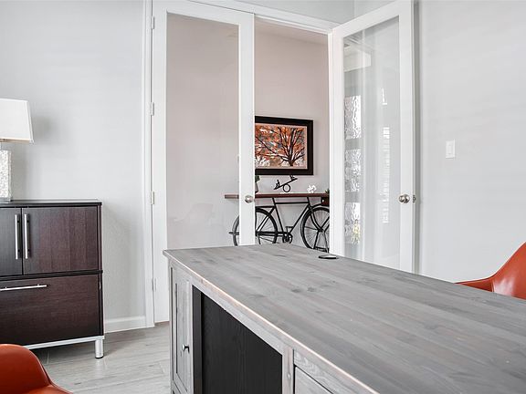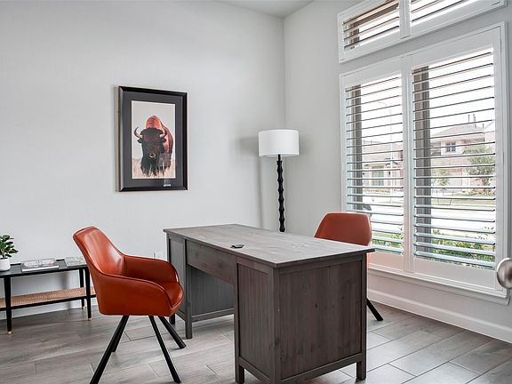 Extended entry highlights 12-foot coffered ceiling. Home office with French doors set at entry. Dining area flows into open family room with wall of windows. Open kitchen offers extra counter space, corner walk-in pantry and generous island with built-in seating space. Spacious primary suite. Double doors lead to primary bath with dual vanities, garden tub, separate glass-enclosed shower and two walk-in closets. Private guest suite with full bathroom and walk-in closet. All bedrooms include walk-in closets. Extended covered backyard patio. Mud room off two-car garage. Fully furnished