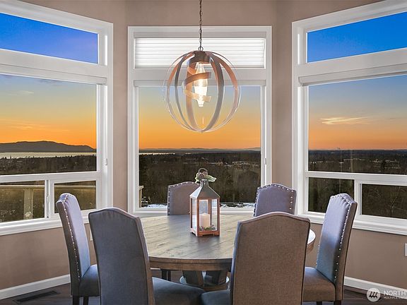 Explore this beautifully updated home with impressive 180-degree views of Bellingham Bay and the islands. The living room, with custom built-ins and a stone-surround fireplace, opens to a deck perfect for enjoying stunning sunsets and the city nightscape. The gourmet kitchen features high-end appliances and a spacious center island, great for entertaining. The primary suite offers comfort with an en-suite bathroom, including a soaking tub, double vanity, and walk-in closet. The flexible lower level, with its own entrance, can serve as an ADU or a multi-purpose media room. Outside, enjoy your personal sport court, fruit trees, and private patio. Just steps from trails, shopping, and dining, this home combines luxury with convenience.