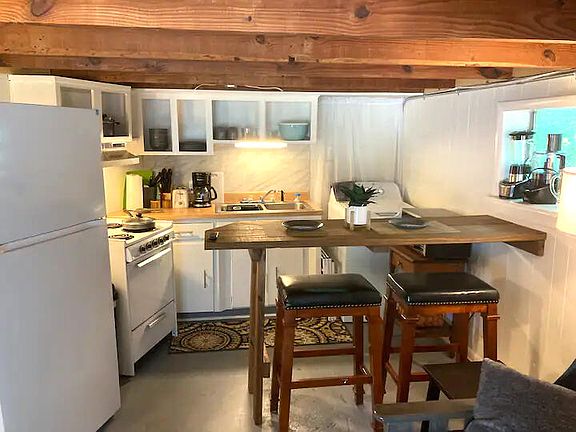 Do not enter the long driveway without your set appointment please. Small but Mighty, this ''Little Cabin In The Woods'' in Galloway Village is nestled in at the end of a long lane, secluded from the road. Here you will find a cozy little place with plum trees and a covered front patio. This home is a current Airbnb, with a low vacancy rate, but makes a perfect residence as well. It will be sold along with most of the furnishings. You can walk to the Galloway Creek Greenway Trail and restaurants in a couple of minutes, and right to the Historic Sequiota Park! This All Electric tiny home has a living/kitchen/dining on the first level, along with the bathroom. (there is no tub, just a shower) Also, this home was constructed with a low ceiling on the main level. There is a 220 outlet behind washer, for a dryer. Upstairs you will find a spacious and bright bedroom, with ample room for a desk and add'l living area. Mini Split HVAC system less than 1 year old.Quaint place to host outdoor get-togethers, cookouts or to gather around the firepit with friends!! Listing agent is related to seller, who is also a Licensed MO Realtor.