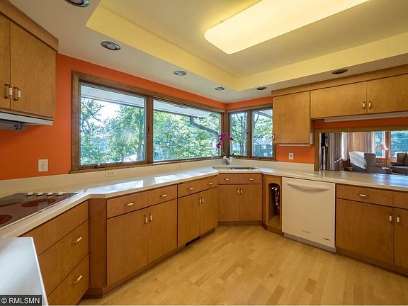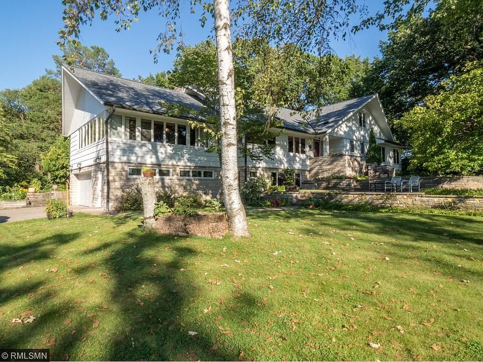 Lake Minnetonka -Libbs Lake- frontage! This mid-century home offers fantastic, panoramic views of this quiet bay on Minnetonka, from the wall of windows in the great room & kitchen. Nicely setback on this 2.5 acre, park like lot, with mature trees, perennial gardens, & includes the permanent dock & boat slip. Property backs up to Jidana Park, offering privacy, wildlife, & wonderful views. The home also features a new roof, 5 BR, 4 BA, & 4 stone FPs, along with easy access to Mpls & 494.