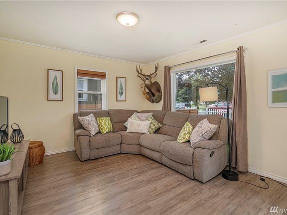 Charming Cottage in historic downtown Enumclaw. Updates maintain the original craftsman charm. Walking distance to parks & downtown events. Lovely glass door greets you at entry. New appliances, true wood cabinets, Vinyl plank flooring through living areas, new carpet in bedrooms, new paint, double pane windows, new bathroom vanity with granite, updated lighting, fully fence yard w/ charming picket fence. You'll love the shop / garage with alley access! Room for RV. BONUS-home has A/C!