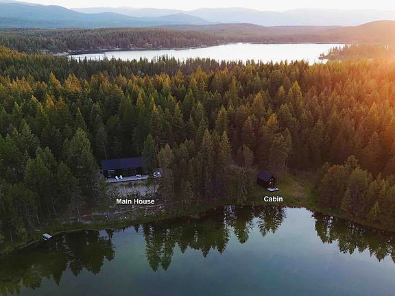 Welcome to this expansive double lot property on 13+ acres! Offering breathtaking lake & mountain views, nestled beside National Forest land for ultimate seclusion. The 1,248 sq ft 2 bed/2 bath main house boasts airy 12-foot ceilings, flooding the space with natural light. Step onto the 900 sq ft Ipe wood deck & convene with the natural world around you. A full home automation system ensures control over lighting, climate, entertainment systems, and appliances, enhancing your modern & functional living experience. Maintenance-free metal siding and roofs across all structures promise contemporary living with minimal upkeep. Five additional structures include a cozy 1 bed/1 bath guest cabin, a 1bed/1 bath studio garage w/ full kitchen, 13'x42' covered RV pad, an outdoor Finland style sauna, and a utility shed. Don't miss this chance to own a perfect blend of modern living and natural beauty! See the attached FEATURE SHEET! Call Sandi Hall at 406.471.0749 or your real estate professional. Two lots being sold together. Property contains a lake & 6 structures with total beds/baths aggregated on the listing.