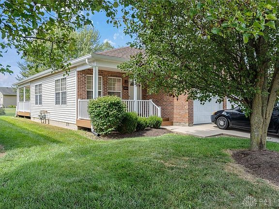 Beautiful well kept condo in Jamestown, Ohio. Front porch with newer vinyl fence to enjoy a summer evening in this quiet neighborhood. The wood patio out back offers an area to entertain guests. This condo offers almost 1200 square feet of living space. Spacious living room with patio doors and kitchen with eat-in bar area. Primary bedroom offers large closet and full bath. 2nd bedroom has new carpet. Utility room with front load washer and dryer that convey with home. All appliances stay. Water heater replaced 1/31/22. Honeywell T6 Pro Thermostat July 2017. Carbon Monoxide alarm July 2017. New Stove Range 5/30/23. HVAC replaced July 2017. Toilets 2018. Front Loader Washer & Dryer 2017. Dishwasher 2018. Paperwork for all items. 2 car attached garage with openers. MUST SEE