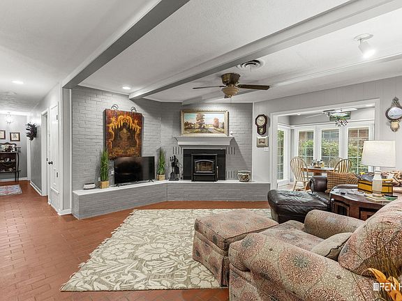 3 Bed 2 bath 1975 sq ft in a quiet close knit neighborhood with laminate flooring and clay tile. Gas heat. Reverse osmosis water filtering tank. Breakfast nook. Sunroom off the cozy den, walk in closets throughout. Pellet burning insert in fireplace. All new double pane windows including glass encasing front door, plantation shutters. Landscaped. Backyard has 3 separate patios for entertaining. Storm cellar and water well Storage buildings in far backyard hidden by fence. Live playback cameras convey.