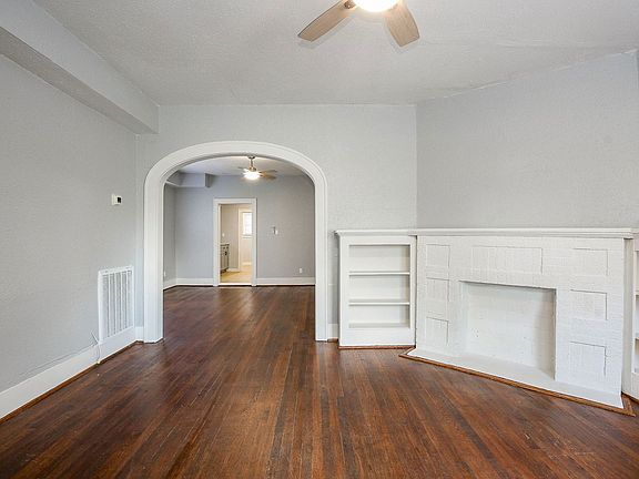 Decorative fireplaceOriginal hardwood floorsCentral air and heatMultiple living spacesTile in wet areasRear parking