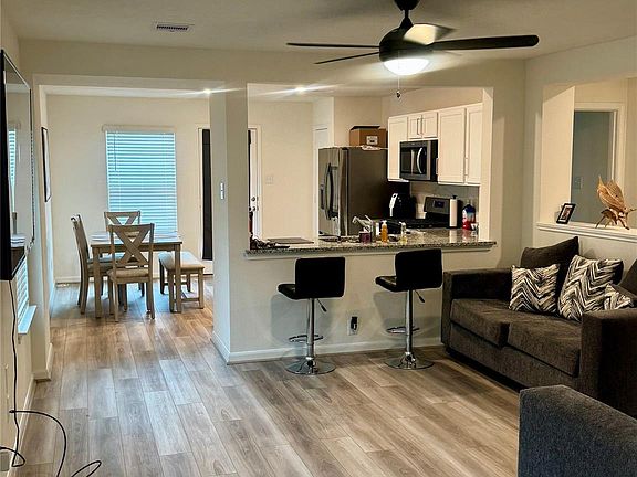 Welcome home to 3015 Kalimera Lane located in Olympia Falls and zoned to Fort Bend ISD! This beautiful home features 3 bedrooms, 2 full baths, and an attached 2-car garage. Additional features include stainless steel Whirlpool appliances including microwave, 42" Woodmont Belmont white cabinets, Silestone kitchen countertops, vanity with two sinks in primary bathroom, vanity with knee space in secondary bathroom, 2" faux wood blinds, black exterior coach lights, 8' Entry Door in Dark Walnut with SmartKey/SmartCode Entry Door Hardware, front gutters, and rear patio slab. You don't want to miss all this gorgeous home has to offer!
