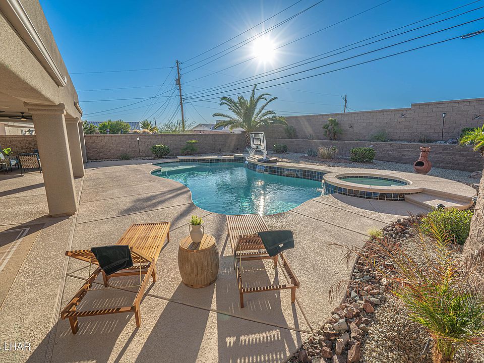 Now available for the 2025-2026 winter season through March 31, 2026! Beautifully maintained and fully furnished, this single-level Lake Havasu home offers 3 bedrooms, 2 bathrooms, and 1,873 sq ft of comfortable living space. Enjoy an open-concept floor plan with vaulted ceilings, tile flooring, and a bright, inviting interior. The kitchen features ample cabinetry, a breakfast bar, and dining area that opens to the living room perfect for entertaining or relaxing after a day on the lake. Step outside to your private backyard oasis with a heated pool and spa, covered patio, BBQ, and plenty of seating to enjoy Arizona's sunshine and sunsets. The 4-car (boat-deep) garage includes a pool table, arcade games, and cornhole. Ideally located near the lake, golf, shopping, and restaurants. Available now through March 31, 2026. Minimum 3-month stay preferred. Utilities included with cap. No smoking, no pets.