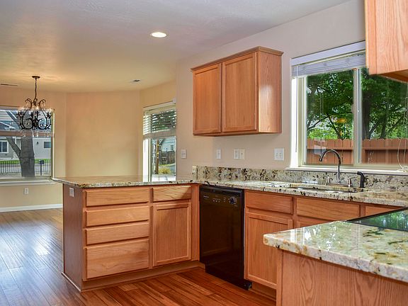 Elegant and Easy Living! This beautiful 3 bed/2 bath 1305 sf home offers gorgeous granite counters in kitchen, bamboo hardwood floors in all areas except bedrooms, which have freshly cleaned carpets. Spacious vaulted ceilings, fabulous floorplan, private back patio, and Single Car Detached Garage, complete the move-in ready package! HOA monthly fees $155 cover landscaping. Completely level walkway from garage to back patio and house. All appliances are included. Perfect for 1st time buyer, Investor, or down sizer! An amazing opportunity for comfortable living!