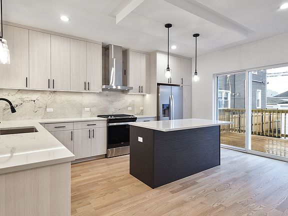 Modern new construction single-family home by top developer on an oversized 30' lot! Sharp facade with brick accents. Extra wide, open concept floor plan. Sun filled main-level features spacious living/dining area with large front windows and hardwood flooring throughout. Adjoining eat-in kitchen with stainless steel Whirlpool appliance package, flat panel cabinetry, quartz counters, island and peninsula with breakfast bar seating, pantry, and patio door to rear deck. Bright and spacious primary bedroom with good storage and private bath featuring a frameless glass shower, vanity with dual sinks, and heated flooring. Two additional bedrooms, full guest bath with tub, and laundry complete the upper-level. Finished lower-level with recreation room featuring wet bar, 4th bedroom, full bath, utilities, and luxury vinyl plank flooring. Nice ceiling heights throughout. Finished closets. On trend design features and tons of natural light! Enclosed backyard with deck and detached two-car garage. Conveniently located near shopping, groceries, restaurants, parks, and more!