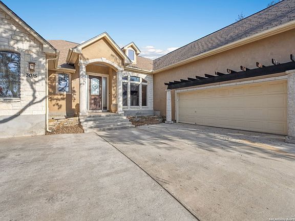 Beautifully updated 3-bedroom, 2.5-bath home with a study on 1.05 acres in the highly desirable River Crossing community. Recently repainted and featuring new appliances, this home combines elegance and comfort with exquisite ceiling details, custom built-ins, and fresh paint throughout. The spacious island kitchen offers granite countertops, a breakfast bar, and opens seamlessly to the inviting family room. Recent updates include a 2-year-old roof, 360 sprinkler system, two A/C units (one under 3 years old), two new water heaters, and new carpet in the bedrooms and primary closet. Enjoy community amenities including a golf course, pool and country club (membership required), and private Guadalupe River access.
