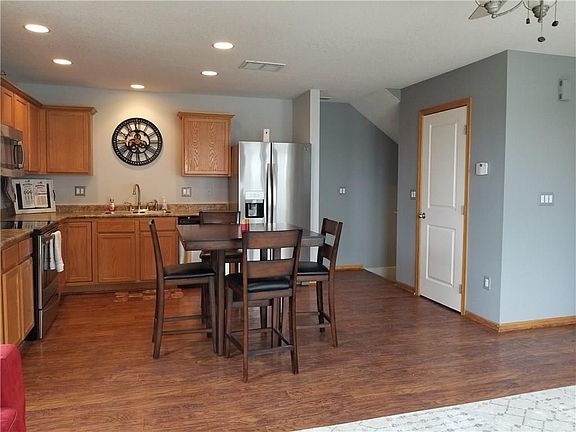Honey, stop the car! This beautiful end unit townhome is located in a prime SW Ankeny location and is ready for you to move in! The moment you walk in you will notice the beautiful NEW high end laminate flooring the flows throughout the ENTIRE home. Freshly painted top to bottom with a neutral gray that makes the home bright and airy, especially with all of the extra windows on the main level. The main floor features an open concept living area, beautiful kitchen with plenty of cabinet and counter space with nearly brand new stainless steel appliances, huge kitchen pantry and a half bath. The 2nd floor has two nice size bedrooms with vaulted ceilings, the master has a walk in closet, full bathroom and a laundry room with extra custom shelving installed as do all of the closets. 2 car attached garage. Pets allowed, no size restriction! Schedule your showing today!