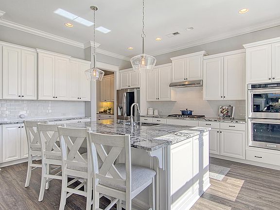Welcome to your dream home in one of the premier gated communities of Mt Pleasant with an amazing golf course and all of the amenities you could hope for! This stunning property is truly country club living at its finest and boasts excellent curb appeal with tidy landscaping and a charming front porch that is perfect for sipping your morning coffee or watching the world go by. As you step inside, you will be greeted by attractive wide plank flooring, high ceilings and oversized crown molding. An office to the left, behind a set of French doors, offers the perfect space to work from home or indulge in your favorite hobby. The dining space is equally impressive, with wainscoting that adds a touch of elegance to every meal.The kitchen is a chef's dream with beautiful granite countertops, elegant white cabinets, a large central island with counter seating, stainless steel appliances, and a double wall oven. The refined living room is the perfect place to relax with an inviting gas fireplace and enormous windows that let in plenty of natural light. The luxurious primary suite is on the second floor and it is bathed in light with stunning views of the wooded area, creating a peaceful and serene atmosphere. And when you want the perfect restful sleep, there are automatic room darkening blinds. The bathroom includes dual vanities, a large soaking tub, a separate shower with a bench, and a huge walk-in closet with custom organization. A spacious laundry room with cabinet storage, a second living space, three generous bedrooms, and two full baths are also on the second level. On the top floor, you'll find the fifth bedroom, a full bathroom, and a generous bonus/flex room with endless possibilities. Tons of storage is found throughout the home and be sure to peek inside the little door under the stairs for a big surprise! Enjoy the beautiful South Carolina weather on the screened-in porch or on the paved patio. A manicured lawn leading to a tranquil pond, and mature trees offer shade and privacy. You'll also be able to enjoy a diverse range of resort-style facilities as a member of the Dunes West community, such as tennis courts, swimming pools, a clubhouse, walking trails, a fitness center, and even options for golf membership at their fantastic course. This property is located 1.3 miles from Lowes Foods and restaurants, 4.5 miles from Laurel Hill County Park, 8 miles from shopping at Towne Center, 11.8 miles from Isle of Palms Beach, 18.6 miles from Charleston International Airport. This home truly has it all - come and see it for yourself!