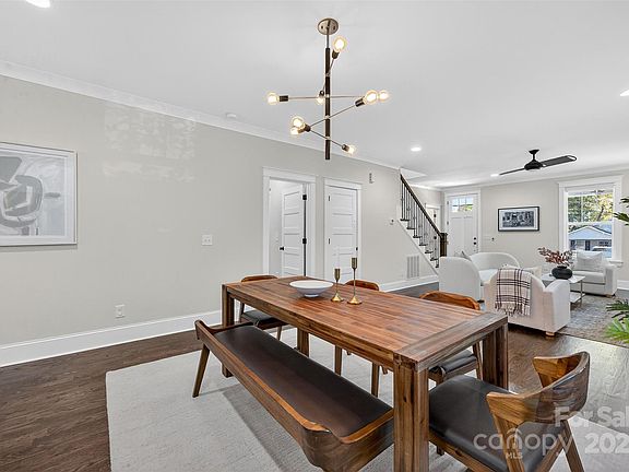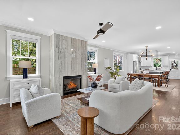 Stunning 2020 custom Craftsman in the heart of Midwood, just steps from NoDa and Central Ave! This home perfectly blends modern comfort and design, featuring an open floor plan ideal for entertaining. The gorgeous kitchen offers a large island, handcrafted cabinetry, quartz countertops, gas range with hood, stainless steel appliances, and overlooks the light-filled living room with a beautiful gas fireplace.