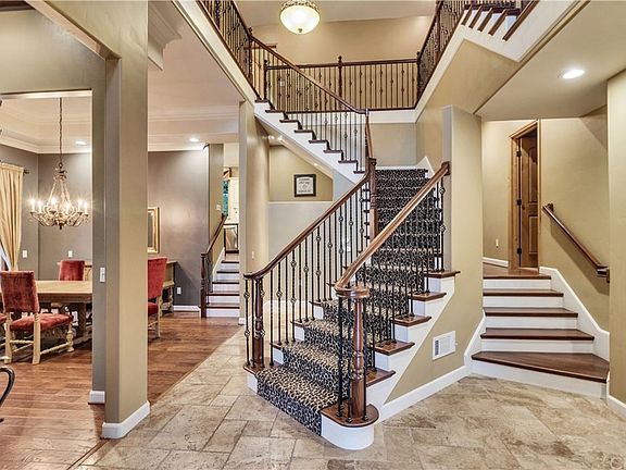Luxurious estate located in the desirable Enchanted Forrest! Custom built and sophisticated architecture inside and out. Grand entry boasts beautiful tile floors and sweeping rot iron staircase. Formal living room with gorgeous gas fireplace, hickory wood floors and and custom bay window. Formal Dining Room with recessed crown molded ceilings, custom chandelier and slider out to more outside dining space. Create your fine dining in the gourmet kitchen equipped with a 6-burner Chef Thermador Stove and gorgeous Kitchen Aid appliances (including the stainless steel fridge that provides ice and water internally). Oversized walk-in pantry. Family room located off kitchen with stunning rock fireplace and custom wood built-ins. Down stairs bedroom with private entry and balcony area. Full downstairs bathroom. Head upstairs to more executive features! Sliding ladder in your own LIBRARY and office space. Huge game room with wood panelling, vaulted ceilings and custom wood trim. Use this as an office, game AND exercise room. Yes, it is that large! Master bedroom retreat with private balcony, relaxing fireplace and vaulted ceilings. Master bath with dual vanities and HEATED FLOORS! Enjoy the oversized tub and take in the forrest views. 2 more upstairs bedrooms and guest bathroom, also with heated floors! Smart lighting throughout. Step outside to the heated driveway with RV parking! Enclosed dog run and attached wood shop/storage area. 2car attached garage. Executive Community!
