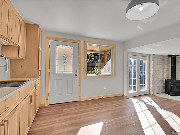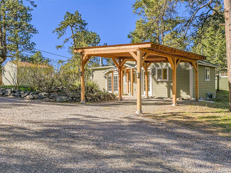 Mountain living in style! Check out this fully remodeled 2-bedroom, 1-bath home with a scenic and bright upstairs loft. Walking in the front door you will find yourself in a spacious bright kitchen with stainless steel appliances and new quartz countertops. Flowing into the living room you will be stunned by the amount of light coming in from the new south facing windows. With a woodstove that can efficiently heat the entire home your furnace will barely need to run! Off of the living room is a secondary bedroom that features a large under stair closet. Making your way up the stairs from the living room you will be greeted by scenic mountain views and plenty of light. This loft would make a perfect office or 3rd bedroom with the built in closet. The primary bedroom is situated privately away from the rest of the house offering its own exterior entrance and large closet with built ins. The full bathroom offers double sinks and a large shower. The bathroom has plenty of storage space and is set up for a stackable washer and dryer. This home lives much larger than its 1200 sqft. The double doors in the living room make outdoor living a reality, taking you out into a gardeners dream. The well developed garden beds flourish in the spring and summer. A large shed offers you plenty of room to store anything you might need to enjoy the Colorado outdoors. The large 1 car carport will make brushing off your car in winters a breeze. This home is move-in ready and located in a secluded neighborhood that is close enough to all the amenities you desire. Don't miss out on this full remodeled home that embraces true Colorado Mountain Living.