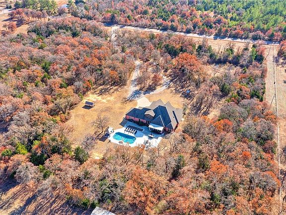 Beautiful wooded circle drive, Electric gate and covered box for deliveries.4bed 4.5bath 10acres PLUS Pond, Bonus/Media room and Study! High 10ft ceilings, open floor plan, amazing woodwork, wood & slate floors, antique doors.There are 3 bedrooms downstairs, including the master, each with its own on suite bath. The gourmet kitchen has higher end appliances w/gas cooktop, double ovens, Knotty Alder Cabinets, Stainless steel top on island and concrete countertops on rest.Champion glass room (15x20) is a 4 season room, not included in sf. The study is large with beautiful antique doors. The upstairs has 1 bed, bath & a large media/game room w/surround system. Home is extremely energy efficient including Spray Foamed. Ceiling fans throughout. 2 LRs, 2Dinning(Formal & Breakfast). Storm cellar.Back patio with over 3000sqft concrete added, inground Pool, Pergola.Fresh paint, new lights, master tub and shower completely remodeled. This home has SO MUCH to offer. Ask to see the full item list!