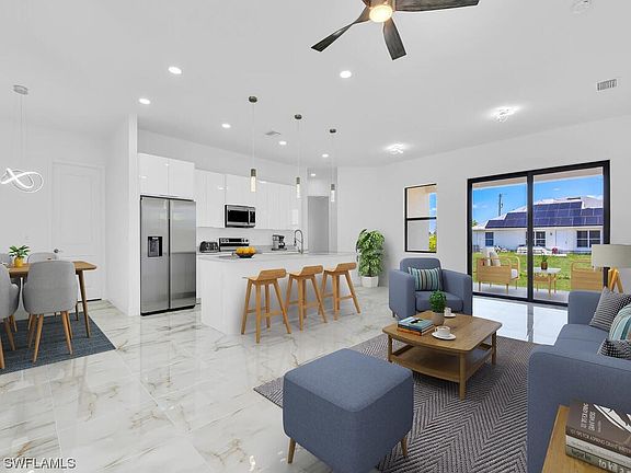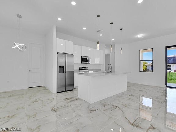 NEW CONSTRUCTION w/ luxury features throughout! Built w/ integrity and featuring -- high-end light fixtures & fans, elegant glass french doors @ front entry, quartz countertops, volume ceilings, ceramic 25x25 tile throughout, LED pendant lighting, stainless steel appliances in kitchen, designer high-gloss Euro cabinets, frameless glass shower enclosures, custom closet system in master suite, Rainfall shower systems, and LED exterior lighting in soffit. Open concept living layout w/ split bedroom floor plan, great room, kitchen w/ breakfast bar, dining area, and covered lanai. Conveniently location- close to lots of shopping, dining, & entertainment options. Plus, easy access to Fort Myers, I-75, Spring Training Field of Boston Red Sox, and SR 82 which leads all the way to the East Coast.