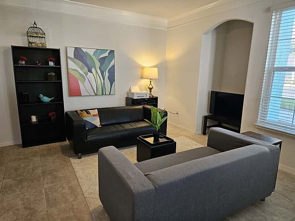 Fully furnished, first floor apartment. 2bed 2bath, 2 walking closets, tile flooring, great lighting, equipped kitchen, washer/dryer, water heater and new central a/c. Apartment building has lots of parking, nice pool, gym, and a playground. Runaway Beach Club is close to Disney World Resort, many nice restaurants, and main stores.