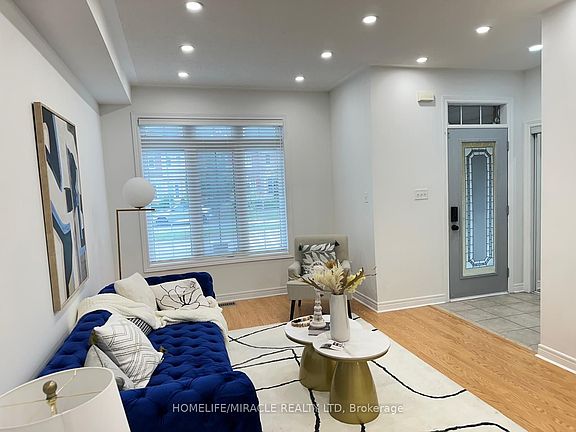 Availability: Nov 1, 2025. Bright, Sun Filled, Spacious and Move-In Ready Townhouse Located At The Heart Of Cornell. Featuring 3 Bed, 3 Bath, And 2 Car Detached Garage W/1 Space on Driveway. Beautifully Designed Luxury Kitchen With The Central Island Waterfall Edge, Quartz Countertops & Backsplash, And Built-In Stainless Steel Appliances. House is upgraded in 2024 With Fresh Paint, Washrooms w/rain shower and Handheld, Hardwood Stairs and New Flooring and Pot Lights Throughout. Finished Basement Includes A Spacious Recreation Room/Home Theatre With Built-In Ceiling Speakers, Workout Area, Large Storage Rooms. Security cameras on the front door, backyard and the garage for safety. Top Rated Schools Nearby :Cornell village Public school (8.2)Bill Hograth High school (8.7) Perfectly Located Near The Cornell GO Station, Top Rated Schools, Cornell Community Center, Hospital, Dining, Banks, Public Transit And Markham Museum. Landscaping Front And Back(2023), Garage Spring(2023), 3D LED Street Number(2023) Close to daycares, shopping (Walmart, Markham Fine Foods), dining, and Markham Museum.