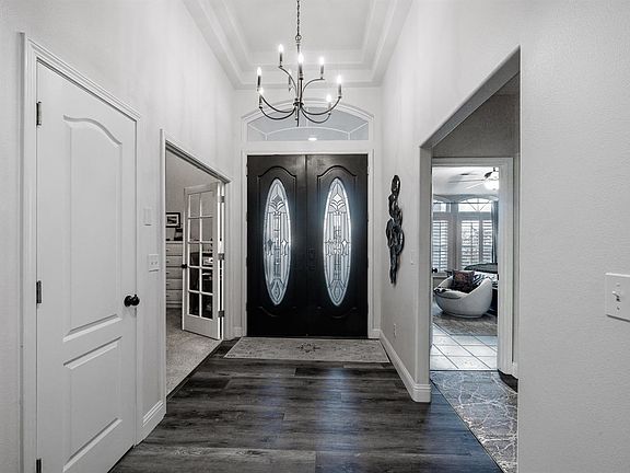 Step into this beautifully updated home filled with custom touches throughout. The remodeled kitchen features new cabinets, elegant chandeliers, custom lighting, and remote-control blinds for added convenience. Also, includes JennAir digital Duel-Oven. Enjoy the spacious kitchenette and dining area perfect for family gatherings and entertaining.This home offers a private office and an impressive game room complete with a bar, sink, built-in cabinets, and a wine fridge the ultimate entertainment retreat. The indoor laundry room adds everyday functionality, while the two and a half bathrooms feature unique designer finishes, including a hall bath with a granite sink, Bluetooth light switch, touch-screen mirror, and custom tile shower.Relax in the master suite's luxurious tub or take the fun outdoors to enjoy two covered patios and sparkling pool. A detached shed provides extra storage space. With attention to detail in every corner, this home blends comfort, style, and functionality for modern living.