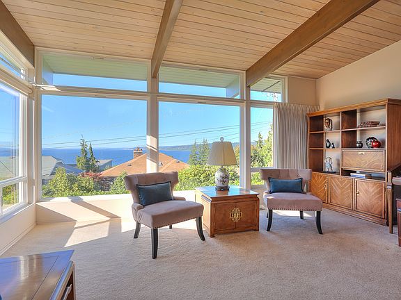 1962 was a hip year for Architecture and that's when this immaculately maintained home was built. It boasts a spacious Living Room with big views, large Dining Room, and a remodeled Kitchen w/eating nook. Banks of windows bring in the light throughout the year. Three beds and two baths on the same floor and the lower level has a rec room, 4th bdrm, bath, sauna and shop space. On a street to street landscaped lot w/2-car garage, this one-owner home has it all, location, condition, buyer appeal and views.