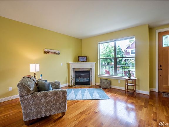 Welcome to Award winning neighborhood! Beautiful solid American Cherry Wood floors thruout main & 2nd floor*Open concept living area formal dining + breakfast bar w/granite counters, rich cabinets*10 ft high ceilings*5 piece mstr w/new bath tile in shower&tub*All bedrooms w/walk-in closets*no clst on 2nd fl bed/media rm*Ceiling fan*Top flr Seattle Skyline View*peak mt view*Easy maintenance private backyard, sprinkler system*access to garage + extra parking spot*2014 tankless hot water heater.