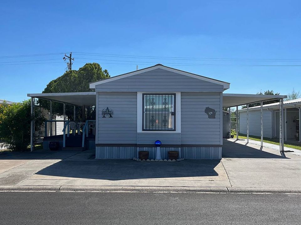 You can enjoy this community and this home located in Siesta Village, Weslaco. Medium size community with manicured yards and plenty of activities. Nice size en-suite, with large bathroom and step in shower, walk in closet, vaulted ceilings throughout the home. Vinyl siding and metal roof with a covered open porch and two carports. New kitchen cabinets, with an open bar. Carpet throughout the home and vinyl flooring in the kitchen. Ceiling fans and this home is all electric. Nicely decorated and good furniture that will stay with the sale.