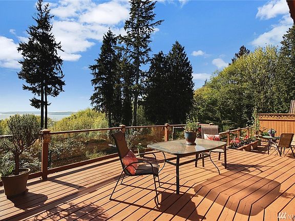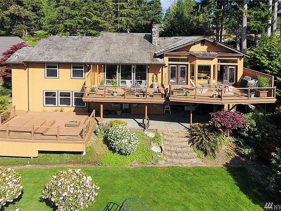 One of a Kind! Distinctive NW Contemporary Custom Sound view Hm set in picturesque setting. Builders home. Impeccable upgrades incl Gourmet Kit w/cherry wood, Viking Stove/Vent hood, Food warmer,Granite Ctrs,Tile Flr, Center Isl, Great Rm w/10ft clear cedar ceilings, Lg Dining area, full length deck. Formal Liv rm w/high vaulted clear cedar ceilings,Driftstone FP w/insert, unique Loft,Mstr Bdrm w/Bth,4 addtl rms, Supersized Rec Rm w/Bar & room for Pool Table. Shop,Office. Park like grounds.