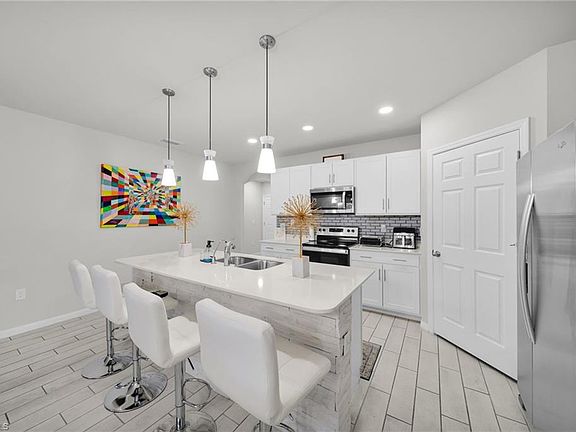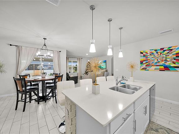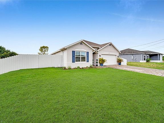 This beautifully maintained home, built just two years ago, offers exceptional value in the highly sought-after 33971 ZIP code — with one of the best prices per square foot in Lehigh Acres! Located at 3017 26th St W, this residence was thoughtfully designed for long-term comfort and durability, including construction on an elevated pad for added peace of mind during heavy rain. The open floor plan features 4 bedrooms, 2 bathrooms, and soaring 9-foot ceilings with 10-foot vaulted accents that fill the home with natural light. Modern finishes include polished Venato porcelain tile throughout, and sleek white quartz countertops in the kitchen. The spacious master suite provides a true retreat with two walk-in closets and a luxurious bathroom featuring a freestanding shower and dual sinks. Conveniently located near I-75, this property offers quick access to Fort Myers, Southwest Florida International Airport, and the world-famous beaches of Sanibel and Captiva Islands.
