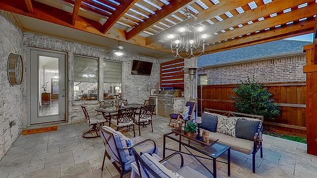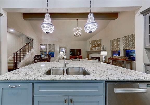 Gorgeous home in Mustang Lakes. Front Yard maintained by HOA. 2 bedrooms on the first floor. Guest suite on 1st floor features a beautiful upgraded walk in shower. French doors for study 5th bedroom with huge walk in closet. Downstairs lighting and ceiling fans have been replaced with stunning custom light fixtures and fans that elevate the rooms. Invite all your family and friends to join you on the extended covered patio. Outdoor living with a dreamy cstom fireplace and outdoor kitchen. Plenty of room for a pool in the landscaped back yard. Large game room two bedrooms hall bathroom upstairs. Frml dining area open flrpln perfect for entertaining. Beautiful Large bedroom and bathroom complete owners retreat