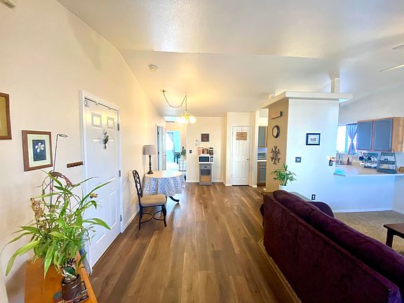 Beautiful 3 bed 2 bath home that shines with updates throughout. The living room is nice with large bay windows, vaulted ceiling and new flooring. The updated kitchen works well with a large pantry, bar setting and a separate dinning area. The huge primary bedroom has a walk in closet with an additional second large closet, full bath and access to the covered patio. The other bedrooms are very nice and large, with newer paint and carpet. In addition, the home has a big two car garage, RV parking, nice landscaping, privacy and views.