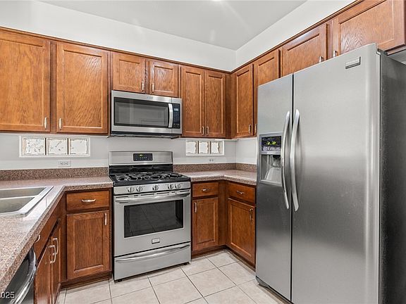 Located in the desirable age-restricted community of Sun City Anthem. Filled with resort-style amenities, residents enjoy tennis and pickleball courts, indoor and outdoor pools and spas, a clubhouse with meeting rooms, billiards, fitness center, and so much more! Inside, the home features easy-care tile flooring throughout—no carpet—plus plantation shutters for a timeless touch. The kitchen is equipped with stainless steel appliances, granite counters, and a cozy breakfast nook with a bay window. Both bedrooms include ceiling fans for year-round comfort. Step outside to a covered patio surrounded by mature landscaping, perfect for relaxing or entertaining.