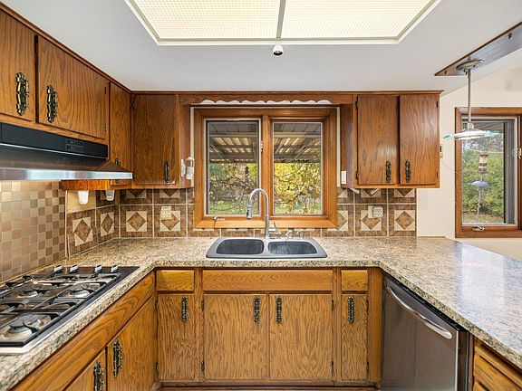 Spacious 4 bedroom home includes 3/4 primary en suite + 3 additional bedrooms on main floor. Oak hardwood floors throughout the main floor and large windows create a welcoming space full of light. Lower Level includes wood fireplace, wet bar, workshop/workbench, and plenty of storage to open a world of possibilities for entertaining and hobbies. Nature lovers will appreciate how the covered front porch and back patio extend the living space regardless of the weather. Additional storage space available in the back shed. Home is conveniently located to public transit, local schools, parks, restaurants, and highways.